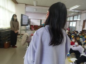 前半は、「災害後を生きるための備えを学ぶ」ためのお話です。内容は、災害が発生するとどんなことが起きるのか、どんな備えがいるのか、災害食についてです。よく「非常食」と言われていますが、東日本大震災後は「災害食」という考えに変わってきました。子供たちは、話をよく聞いてメモを取っていました。
