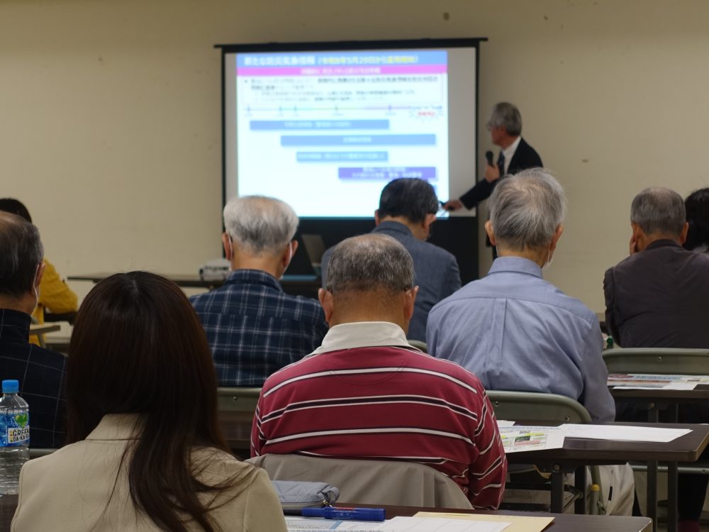 委嘱状交付式後は研修会ということで仙台管区気象台より、5月末から始まる新たな防災気象情報についてお話いただきました。